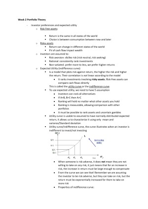 Achieved an HD in this units. These are all the information that I have compiled over the semester that enabled me to achieve this score. If you want to do well in this unit without watching 20+ hours of lectures, then this is the summary for you. Contained are all the things you need to achieve an HD and understanding all the theories as quickly as possible.. this means no useless information Included: - comprehensive, formatted information that is clear and emphasizes key points - Lots of images, graphs and formulas throughout to assist you - all content covered from week 1-12 (updated s1, 2017) Topic List: 1. Asset and Investments 2. Portfolio Theory 3. Asset Pricing Models 4. Market Efficiency 5. Behavioral Finance 6. Ethics 7. Security Analysis I 8. Security Analysis II 9. Options 10. Portfolio management I 11. Portfolio Management II 12. Exam Notes