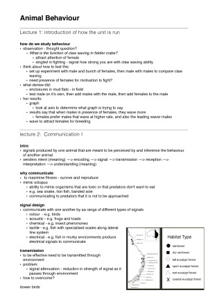BIO3052: Animal Behaviour Notes