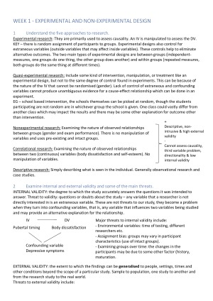 Comprehensive unit notes covering weeks 1 - 10 and include question and answers included in the study guides. Notes help with understanding weekly content and with studying for the exam. I took these into the exam with me and received a HD (85) in the unit. W1 - Research design W2 - Correlations W3 - Multiple Regression W4 - Simple ANOVA/Analysis of variance W5 - Multiple comparisons W6 - Factorial ANOVA W7 - Repeated Measures W8 - Sampling W9 - Surveys and Scales W10 - Qualitative Methods