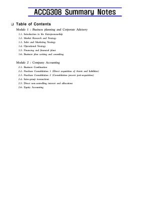 Company accounting and corporate advisory - all you need for ACCG308 from A to Z - Detailed demonstrations on the journal entries - Step-by-step consolidation & Equity accounting - Smash your finals: Satisfaction guaranteed This note will definitely help you to get through the good old consolidation. Invest a little and expect a lot.