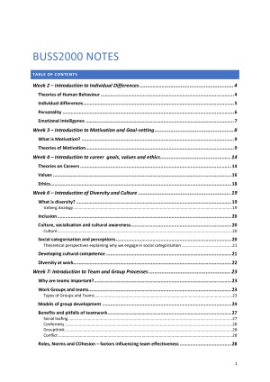 Contains notes that summaries which content from the online lecture, theories and reading summaries. The main themes were Understanding Yourself, Understanding Others, and Leading and Influencing Others: - W2: Individual Differences - W3: Motivation and Goal Setting - W4: Career Goals, Values and Ethics - W6: Diversity and Cultural Differences - W7: Team and Group Processes - W8: Managing Perceptions and Conflict - W10: Leadership, Power and Influence - W11: Communication and Feedback - W12: Career sustainability: Manging relationships and stress