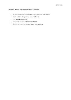 ECON1102 HD CONDENSED NOTES Clear formatting, easy to read Has all necessary formulas Has demand and supply graphs to illustrate concepts Has current statistics Covers all topics - Economic growth - Inflation - Saving and wealth - Unemployment and the labour market - Short run economic fluctuations - Spending and output in the short-run - Fiscal policy - Money, prices and the reserve bank - The reserve bank and the economy - Aggregate demand and aggregate supply - Macroeconomic policy - Open economy macroeconomics: exchange rates - Open economy macroeconomics: net exports and international capital flows - The economy in the long run: economic growth