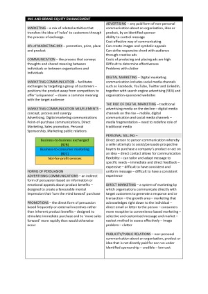 MARKETING COMMUNICATION MKTG1041 LECTURE NOTES WEEK 1 - WEEK 12 WEEK 1 - IMC AND BRAND EQUITY ENHANCEMENT WEEK 2 - THE COMMUNICATION PROCESS WEEK 3 - MARKET SEGMENTATION AND BRAND POSITIONING WEEK 4 - PLANNING AND IMPLEMENTATION; CREATIVE IDEA GENERATION & SELECTION; DEVELOPING MESSAGE STRATEGIES AND CREATIVE STRATEGY AND TACTICS WEEK 5 - BROADCAST MEDIA/PRINT AND SUPPORT MEDIA WEEK 6 - DIGITAL AND SOCIAL MEDIA MARKETING WEEK 7 - DIRECT MARKETING; SALES PROMOTION; MARKETING PUBLIC RELATIONS; SPONSORSHIP MARKETING Notes from all week recordings