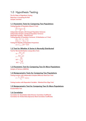 ✔ Ultimate H1 Summary Notes✔ (The sample is just thumbnails for preview, the actual note is in full size! NOTE: The first three pages of the preview are the topics, only one topic is previewed out of 10.) - All information collated from lectures, tutorials and readings - Well formatted and easy to follow - Clearly separated into key topics - Digital and printing friendly (PDF) - Concise, logical, easy to understand and memorise. - Up to date with the current curriculum - Written by an H1 student currently on the Dean's Honour List These notes helped me get an H1 in ECON20003: Quantitative Methods 2 in 2018! Not only are these fantastic for c̶r̶a̶m̶m̶i̶n̶g̶ revision, but can aid continuous study throughout the semester! These notes were personally collated from tutorials, lectures and readings to reflect the syllabus and exam content. Tips: Read the lecture slides before lectures, listen and follow the lecture exercises, review the notes afterwards and refer to additional readings if you're still confused. Tutorial questions are very important and often exam related.