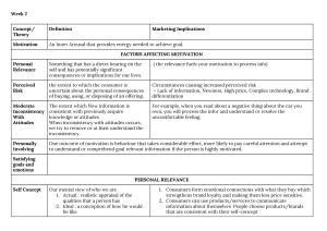 Weeks and Topics covered. 2018 Sem 1 2 Motivation, Ability and Opportunity 3 From Exposure to Comprehension 4 Memory and Knowledge 5 Attitudes and Persuasion 6 Problem Recognition and Information Search 7 Judgement and Decision Making