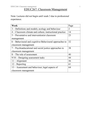 Notes for all lectures (lectures did not begin until week 3 due to professional experience). Topics are as follows: 3 – Definitions and models; ecology and behaviour 4 – Classroom climate and culture; instructional practice 5 – Preventative and interventionist classroom management 6 – Behavioural and cognitive-Behavioural approaches to classroom management 7 – Psychoeducational and social justice approaches to classroom management 8 – The role of assessment 9/10 – Designing assessment tasks 11 – Alignment 12 – Reporting 13 – Assessment and behaviour; legal aspects of classroom management