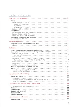 Notes from Contracts 1 ECU I didn't really get 100 in this unit... haven't sat exam yet... it won't let me upload without a score! Topics: O&A, Consideration, Estoppel, Requirement of Writing, Intention to create legal relations, Construction of Terms, Express Terms, Implied Terms, Certainty and completeness, Privity (all topics from the semester).