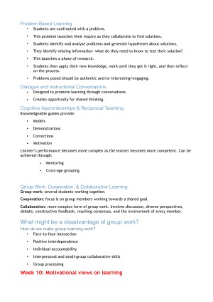Topics covered: - Importance of research - Expert vs. novice teachers and teacher efficacy - Physical development - Cognitive development - Personal, Social and Emotional development - Learner differences: Intelligence and Gender -Sociocultural diversity: Ethnicity, SES, and the Bioecological Systems Model - Behavioural views of learning - Social Cognitive views of learning - Cognitive views of learning - Constructivist views of learning - Motivational views on learning 10 Weeks of 1 hr lectures and 2 hr tutorials every week,