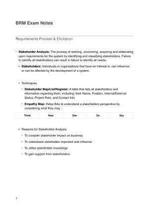 Comprehensive study notes that cover all lectures and have in-depth diagrammatic examples. Includes content on requirements elicitation, process modelling retirement specification with information on diagram notation and construction. Topics: - Requirements Process & Elicitation - Business Process Modelling - Data Modelling - Software Requirements Specification - Use-Case Modelling - Class Modelling - State Transition Diagrams - Sequence Diagrams