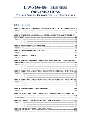 LAW 456: BUSINESS ORGANISATIONS LAW COURSE SUMMARY EXAM NOTES, LECTURES 1-12