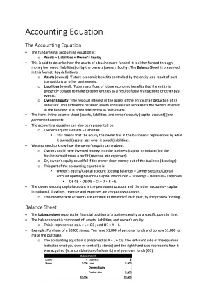 These notes are a comprehensive summary of AFM101 compiled from lectures, lecture notes, and textbook readings. I received an HD in this unit with a mark of 97, so these notes are very high quality. They simplify complicated ideas, while explaining them succinctly. They will be beneficial to any student undertaking this unit. Topic list: Topic 1 - Accounting Equation Topic 2 - Recording of Transactions Topic 3 - Accounting Information Systems, Special Journals, Subsidiary Ledgers and Control Systems Topic 4 - Adjusting the Accounts and Preparing Financial Statements Topic 5 - Preparing Accounting Reports - Completing the Accounting Cycle Topic 6 - Accounting for Merchandising - Retail Operations Topic 7 - Accounting for Inventories Topic 8 - Internal Control and Accounting for Cash Topic 9 - Accounting for Receivables, Payables and Current Liabilities Topic 10 - Accounting for Property, Plant and Equipment Topic 11 - The Role of Accounting Topic 12 - Financial Statement Analysis and Interpretation