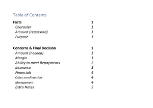 Score an HD for this test using this easy-to-memorise template of answers and instructions!! Mid-semester in-class test requires answers to be set out using the Facts, Concerns, Final Decision formula whilst referencing each element of CAMPARI. This HD template includes all the possible case study CONCERNS the bank may have and the corresponding FINAL DECISION requirements (requirements the banker places on loan applicant to mitigate the concerns)