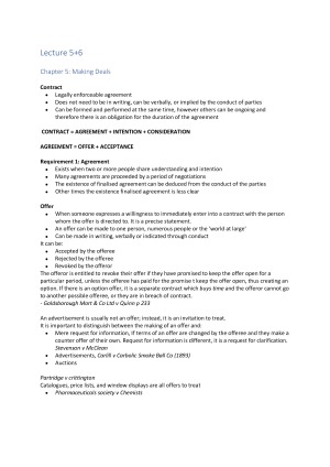 These notes are very extensive, delving further into lecture discussions to easily explain core concepts and include excerpts and diagrams from the text book. The topics covered include: - Introduction to Law - Understanding the Australian Legal System - Causing Harm and Negligence - Making Deals (Contract Law) - Enforcing Deals (Contract Law part 2) - Dealing with Consumers - Revision and Exam Summary This includes all content covered in the semester– from weeks 1-11