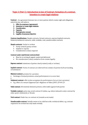 80 overall grade Thoroughly covers all topics Topic 1 – The Australian Legal System Topic 2 – Contract (part 1): Intro to Contract; Formation of Contract; Intentions to Create Legal Relations Topic 3 – Contract (part 2): Consideration; Contractual Capacity; Genuine Consent Topic 4 – Contract (part 3): Genuine Consent; Legality of Objects; Consents and Interpretation of Contract Topic 5 – Contract (part 4): Operation of a Contract; Termination of a Contract; Remedies Topic 6 – Consumer Protection Topic 7 – Introduction to Business Entities: Agency and Partnerships Topic 8 – Partnership & Corporations Law Topic 9 – Corporations Law Topic 10 – Corporations Law & Law of Torts: Insider Trading; Company Insolvency; Law of Torts