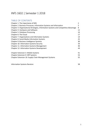 - all chapters covered from weeks 1-12, including chapter extensions - revision sheet with important points for exams - in point form for easy understanding - includes diagrams from the textbook (Experiencing MIS, Global Edition 7e)
