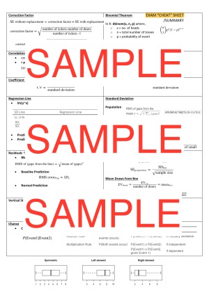 Succinct notes and diagrams that also include basic RCodes required for the final exam. Also includes the double-sided A4 summary sheet I made that could be brought into the exam. Topics included: Design of Experiments, Graphical Summaries, Numerical Summaries, Normal Model, Linear Model, Understanding Chance, Chance Variability, Sample Surveys, Hypothesis Testing, Tests for a mean, Tests for relationships