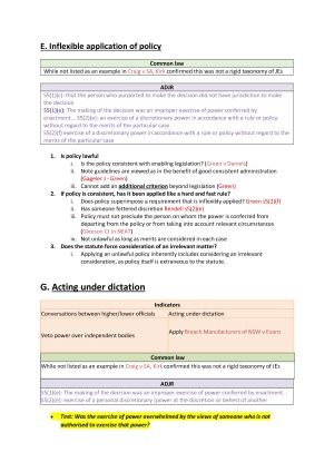 Full exam notes for Administrative Law covering all topics. Covers the whole 2018 course, including: scope of judicial review, judicial review remedies, jurisdictional errors, grounds of review, standing, statutory restrictions on jurisdictional review, tribunals and merits review. Grade: HD