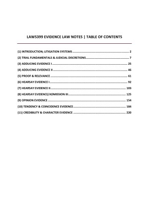 Detailed yet extremely easy to understand. Completed this unit with a 85. Please feel free to have a look at my preview which shows notes on the topic of Tendency & Coincidence Evidence (37 Pages). I am giving this topic for free, as I want you to be confident in your purchase. These notes are summaries of the important cases, legislations and examples found in the Lectures, Tutorials and Textbook. With these notes, there is no particular need to listen to the lecture slides; all important material that was elaborated in the lectures, have been summarised in the notes. This includes all the relevant examples that were discussed by the Unit Convenor/Lecture, which will help you understand the content and achieve an excellent mark. Topic Outline: (1) Introduction | Litigation Systems (2) Trial Fundamentals & Judicial Discretions (3) Adducing Evidence I (4) Adducing Evidence II (5) Proof & Relevance (6) Hearsay Evidence I (7) Hearsay Evidence II (8) Hearsay Evidence and Admission III (9) Opinion Evidence (10) Tendency & Coincidence Evidence (11) Credibility & Character Evidence