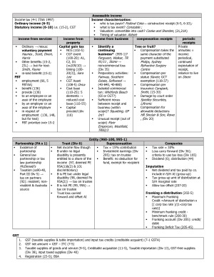 Very useful scaffold summarizing the course! very comprehensive note covering all the key readings! Topics Topic 1 Introduction to Tax Policy Topic 2 The Australian Taxation System Topic 3 Capital Gain Tax Topic 4 Fringe Benefit Tax Topic 5 Business Tax Topic 6 Compensation Topic 7 Deduction Topic 8 Specific Deduction: Depreciation and Trading Stock Topic 9 Entity Topic 10 International Taxation Topic 11 Tax Administration Topic 12 Ethics and avoidance Topic 13 GST