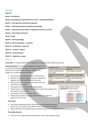 PSY234 PERSONALITY AND SOCIAL PSYCHOLOGY