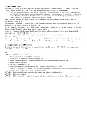 WA and Cth Law of costs Disclosure requirements contingency fees cost assessment law and procedure P/P & P/C Cost orders Calderbank and other settlement offers Provisional assessments 3rd party payer rights cost agreements law overview of costs