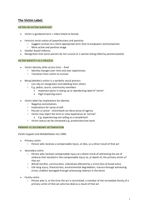 Topics Covered: Measuring Crime; Uses and Misuses of Official Crime Statistics; Victims and Victimology; The Victim Label; Victim Recognition; Ideal Victim; Victims in the Criminal Justice System Lectures: Weeks 1 - 13