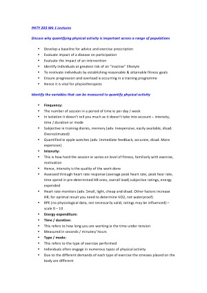Thorough lecture and prac notes, assignment scaffolding, outlining examination of acute and chronic responses of the body to resistance and aerobic exercise Topics include - Energy systems relevant to physical activity - Exercise modes and assessment of skeletal muscle performance - Principles of resistance exercise therapy - Acute responses to resistance exercise therapy - Adaptations to implementation of resistance exercise therapy - Application of resistance therapy to physiotherapy practice - Cardiorespiratory response to aerobic exercise therapy - Cardiorespiratory response to deconditioning and bed rest - Assessment of aerobic function - Principles of aerobic exercise therapy - Limitations to aerobic exercise therapy - Application of aerobic exercise therapy to physiotherapy practice - Working in a multidisciplinary team