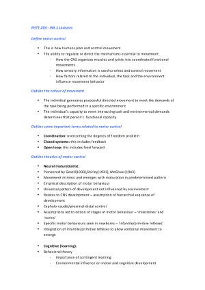 Detailed lectures notes outlining key terminology / information in analysis of normal and pathological movement. Topics include - Sensorimotor development 0-12 years - Observation and assessment of motor development of an infant and a young child - Analysis of fundamental movement skills in children - Aging and physical change - Changes in movement related to age: - Movement control across the lifespan - Analysis of gait & pathological movement - Changes in gait resulting from pathology to the hip, knee or ankle - Functional and biomechanical impact of pathology to the hip, knee or ankle - evelopment of individualised physiotherapy intervention programs to improve function of an individual with pathology to the hip, knee, ankle or neurological deficit