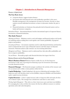 These are well-condensed but detailed notes on each topic to help prepare for final exams and complement your study for Fundamentals of Business Finance at University of Technology Sydney. The following notes contain diagrams and information to help clearly understand Fundamentals of Business Finance (25300) and includes notes from all lectures and tutorials. I have also attached a completed NOTE to take into EXAM. It is 2 pages (double sided) with the formulas and additional details, not using formula abbreviations so it is easier to follow through. Specifically, the following topics are covered: 1) Introduction 2) Time Value of Money 1 3) Time Value of Money 2 4) Debt 5) Equity 6) Capital Budgeting 1 7) Capital Budgeting 2 8) Risk and Return 9) Cost of Capital 10) Capital Structure 11) Data and Analytics There are only 11 lectures. I have also attached a completed NOTE to take into EXAM. It is 2 pages (double sided) with the formulas and additional details, not using formula abbreviations so it is easier to follow through. Goodluck and thank you for using those notes. Note: The sample notes contain 10% of the complete notes.