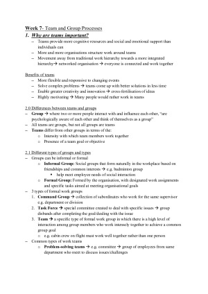 Complete, detailed BUSS2000 Lecture notes. These were compiled weekly, and revised prior to the final exam, which I received a HD in. Notes are filled with diagrams to help facilitate your understanding. This noteset will be all you need for this course! Topic list: W1 - Face to face lecture W2 - Individual differences: cognitive ability, personality, and emotional intelligence W3 - Motivation and goal-setting W4 - Career goals, values, and ethics W5 - Theme 1 review and theme 2 introduction W6 - Diversity and culture W7 - Team and group processes W8 - Managing perceptions and conflict W9 - Theme 2 review and theme 3 introduction W10- Leadership, power and influence W11- Communication and feedback W12- Career sustainability: managing relationships and stress W13- Unit Recap
