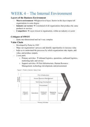 Condensed BUSS1000 Noteset that is full of diagrams and detail. This is great for students looking to do well in the final exam! Topic list: W1 - An Introduction W2 - THE NATURE, ROLE AND PURPOSE OF BUSINESS W3 - THE EXTERNAL ENVIRONMENT W4 - The Internal Environment W5 - Technology and Systems W6 - Strategy W7 - Entrepreneurship and Intrepreneurship W8 - Design Thinking W9 - Climate Change and Sustainability W10 - The Future of Work W11 - Economic Power Shift W12 - Urbanisation W13 - Final Exam