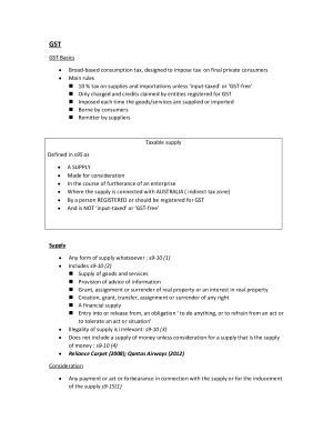 Contents as below: 1) GST 2) RESIDENCY 3) INCOME FROM BUSINESS, SERVICES AND PROPERTY 4) DEDUCTION 5) FBT 6) TAXATION OF COMPANIES 7) TAXATION TO CAPITAL GAIN 1
