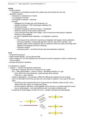 Detailed notes from every lecture, including useful diagrams, tables and images. Further notes are included on some hard to understand topics which were written from youtube videos. Included are some example questions, assignment notes and some info on what to study for exam. Topic List: Genomics: - genome sequencing - next gen sequencing techniques - functional genomics Homologous Recombination Site-Specific Recombination Gene Regulation Plasmid Biology Cell Wall Bacterial Secretion Systems