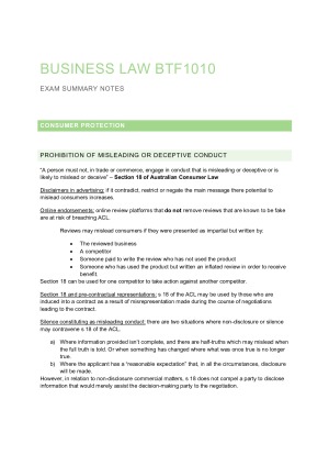 BUSINESS LAW EXAM SUMMARY NOTES (BTF1010)