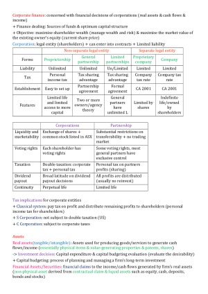 FINC2011 Summary + Additional reading + Key Concepts + FINC2012 (addtional notes) Topic Lists 1. Introduction to corporate finance 2. Financial system 3. Financial Mathematics 4. Bond/Shares 5. Capital Budgeting/Cash Flow estimation 6. Return/Risk 7. CML/CAPM 8. Market Efficiency 9. FINC2012 Note (include capital budgeting, option, agency theory, debt/equity valuation)