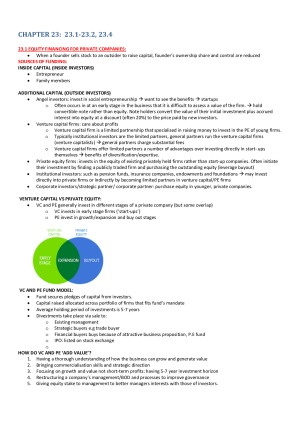 Using these notes achieved 89. Simplified but extensive finance notes, going through all course concepts and formulas required. Notes gathered from lecture notes, textbook, MFL and only relevant topics are included. Everything you need to know to get high marks! Content: 1. CAPITAL STRUCTURE IN A PERFECT MARKET 2. DEBT AND TAXES 3. CAPITAL STRUCTURES- FINANCIAL DISTRESS, MANAGERIAL INCENTIVES AND INFORMATION 4. PAYOUT POLICY IN PCM 5. PAYOUT POLICY- PERSONAL TAXES 6. CAPITAL BUDGETING AND VALUATION WITH LEVERAGE 7. SOURCES OF FINANCING 8. MERGERS AND ACQUISITIONS 9. FINANCIAL OPTIONS 10. OPTION VALUATION 11. CORPORATE GOVERNANCE
