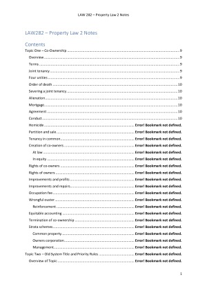 The notes include a comprehensive outline of all of the topics covered in LAW282. I used these notes for my assignment, exam preparation and my exam.