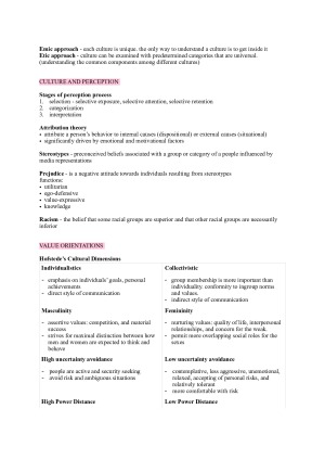 Week 2 - Communication Week 3 - Culture Week 5 - Culture and Perception Week 6 - Value Orientations Week 7 - Categorization Week 8 - Verbal & Nonverbal Codes Week 9 - Immigration Week 11 - Intercultural Relations Week 12 - Intercultural Conflicts Week 13 - Global Citizens