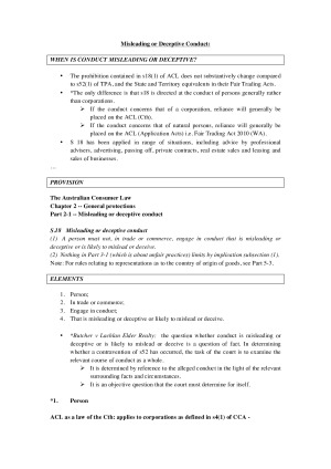 This course was taught over a 13 week semester and covered (in-depth) the following topics: - Misleading and deceptive conduct - Consumer guarantees - Unconscionable conduct - Specific false or misleading representations - Unfair contract terms - Liability of manufacturers for goods with safety defects - Remedies