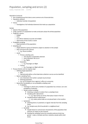 Comprehensive notes for all key MKTG1002 content. Includes summary of lecture, summary of all relevant textbook chapters, and 36 short answer sample questions. Topics: Intro to marketing research General - frameworks Conceptual framework Philosophy Research ethics Theoretical framework Methodological framework Quantitative and qualitative Population, sampling and errors Examples of methods (fieldwork, observation and interviews) Surveys, questionnaires, attitude research Analytical framework Qualitative analysis Quantitative analysis 36 sample short-answer questions Organised logically, with each title indicating whether the content is before (1) or after (2) the mid-sem. NOTE: Questions are not used in assessments. They were made up by myself.