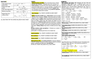 This cheat sheet can be used in your final exam, as a basis to create your own or as a study tool. I used this cheat sheet in the final exam and achieved a HD result with minimal study in the exam period. This cheat sheet includes ALL necessary formulas, theory and examples for the ENTIRE semester. Many of the examples in my cheat sheet were almost identical to questions in the exam. TOPICS COVERED: Week 1: The Financial System & Interest Rates Week 2: Time Value of Money 1 Week 3: Time value of Money 2 Week 6: Bond Valuation Week 7: Share Valuation Week 8: Capital Budgeting Week 9: Risk and Return Week 11: Raising Capital Week 12: Financial Crisis Not included: Weeks 4 & 5: Covered in excel assignment Week 10: In class test.