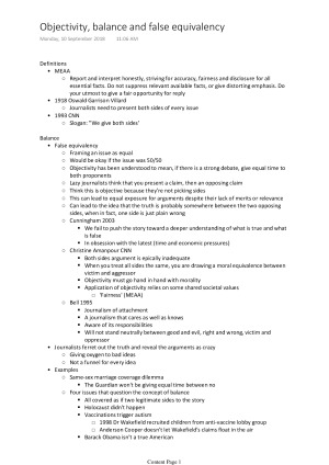 All lectures and key practical info from tutorials included ( how to structure news story). All key readings also summarised. Readings help for the 10% reflection but are not essential to a HD in the unit Topics Overview News conventions, objectivity News story structure (tutorial) Statistics and research News framing and agenda setting Interview tips Objectivity, balance and false equivalency Crime and punishment Media diversity Fake news Satire Iceberg theory