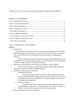 Comprehensive exam notes taken from the pre-recorded lectures and readings. Notes are based of the weekly learning objectives. The subject was completed recently with a HD. Topics covered: - Biological development - Emotional development - Social development - Cognitive development - Moral development - Language development - ADHD - ASD - Motor development