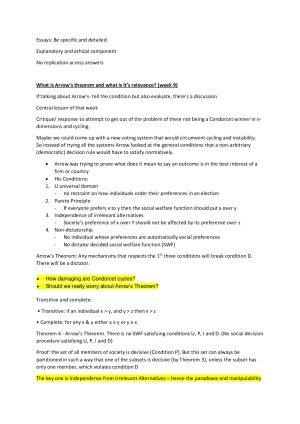 Includes 3 Essay topics. Practice questions and answers Essay Tips Topics Include: 1. What is Arrow’s theorem and what is its relevance? 2. Manipulation of electoral systems 3. Freedom and its Measurement