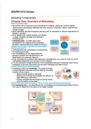 84 Pages of high-quality textbook notes covering every chapter from the textbook 'Marketing' by Dhruv Grewal, Michael Levy, Shane Mathews, Paul Harrigan and Tania Bucic. Topics covered include: 1 - Overview of Marketing 2 - Digital Marketing 3 - Marketing Ethics, Sustainability and CSR 4 - Analysing the Marketing Environment 5 - Consumer Behaviour 6 - Segmentation, Targeting and Positioning 7 - Marketing Research 8 - Product and Branding Decisions 9 - Developing New Products 10 - Services, The Intangible Product 11 - Pricing Concepts for Establishing Value 12 - Supply Chain, Channel Management and Retail 13 - Integrated Marketing Communications, Advertising and Public Relations