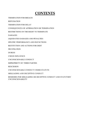 Comprehensive step-by-step exam guide and case summaries of all examinable topics for LAW2102. Topics covered: Termination for Breach Repudiation Termination for Delay Consequences of Affirmation or Termination Restrictions on the Right to Terminate Damages Liquidated Damages and Penalties Specific Performance Injunctions Restitution Actions for Debt Frustration Duress Undue Influence Unconscionable Conduct Impropriety by Third Parties Rescission Unconscionable Conduct Under Statute Misleading and Deceptive Conduct Remedies for MDC and Statutory Unconscionability