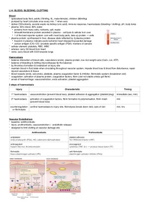 This set of notes (Part 1) comprises Lectures 1-16 while the remaining lecture notes are available in Part 2 due to size constraints on this site. Each lecture note is 2-4 pages long yet contains all essential information from the lecture slides + detailed explanation stressed by lecturers. Relevant diagrams were also included. These notes were consistently edited to be clear & concise for the MST and final exam. I solely revised these notes during swotvac and managed to get H1 (91%) for this subject ☺️ Topic List: L1: Pathology L2: Stress & Injury L3: Reversible & Irreversible Injury L4: Cell Death L5: Haemopoiesis L6: Acute Inflammation I L7: Acute Inflammation II L8: Acute Inflammation III L9: Chronic Inflammation L10: Tissue Repair L11: Blood Vessels L12: Atherosclerosis L13: *Revision Lecture* (not included in this set of notes) L14: Blood, Bleeding, Clotting L15: Thrombosis L16: Embolism & Infarction