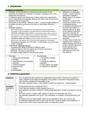 this super summary includes all important rules and guidelines and helps you to have a distinction in the intensive one-hour exam! Topics: - topic 1 introduction - topic 2 arbitration agreement - topic 3 applicable law - topic 4 Arbitration administration: institutional or ad hoc - topic 5 The seat of the arbitration - topic 6 Court intervention - topic 7 Constitution of the tribunal - topic 8 Arbitral Proceedings - topic 9 Interim measure - topic 10 Confidentiality and privacy - topic 11 Recognition and enforcement - topic 12 Appeal and challenges - topic 13 Specific procedural issues - topic 14 Award, interest, cost - topic 15 Investment treaty arbitration