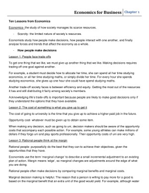 Concise subject notes for Economics for Business. Notes cover each weeks lecture/readings.