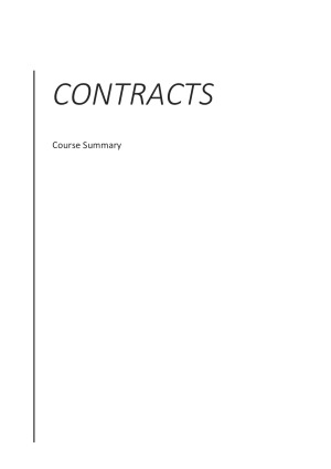 Complete course notes for Contracts LWZ118 (Charles Darwin Uni) from 2018. Table of Contents doubles as an exam quick-reference and includes relevant case citations (see preview) The summary covers all aspects of contracts, including : - Offer & Acceptance - Certainty and Completeness - Intention to create legal relationships - Informal Agreements - Consideration - Contractual Capacity - Privity of Contract - Express Terms - Implied & Incorporated Terms - Exclusion Clauses - Vitiating Factors: Mistake - Vitiating Factors: Misrepresentation - Vitiating Factors: Misleading & Deceptive Conduct - Vitiating Factors: Duress - Vitiating Factors: Undue Influence - Vitiating Factors: Unconscionable Transactions - Vitiating Factors: Illegality - Discharge of Contracts - Remedies - Damages